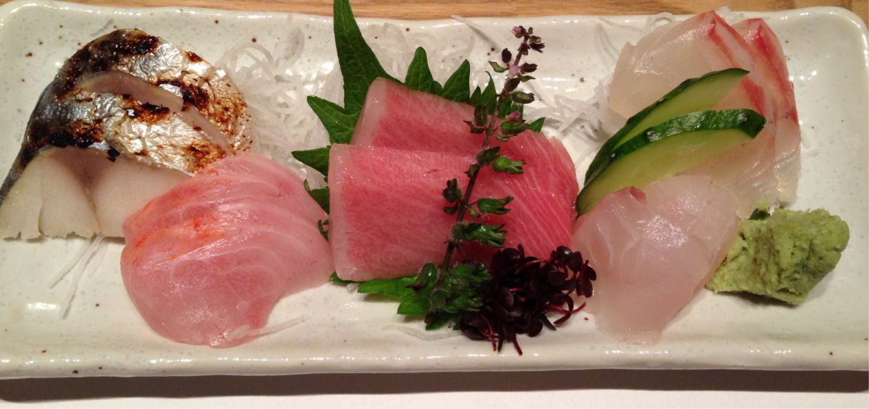 お刺身。真鯛、中トロ、炙り〆サバなど。新鮮。