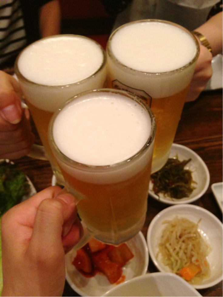 サムギョプサルとはいえ(韓国ではサムギョプサルといえば焼酎なのですが)、日本人ならとりあえずビールから\(//∇//)\