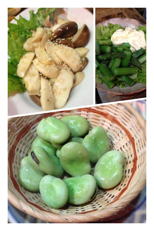 ■アスパラサラダ(400円)と天豆そらまめ(380円)は茹でたで。温野菜が好きな私にはもってこいでした。